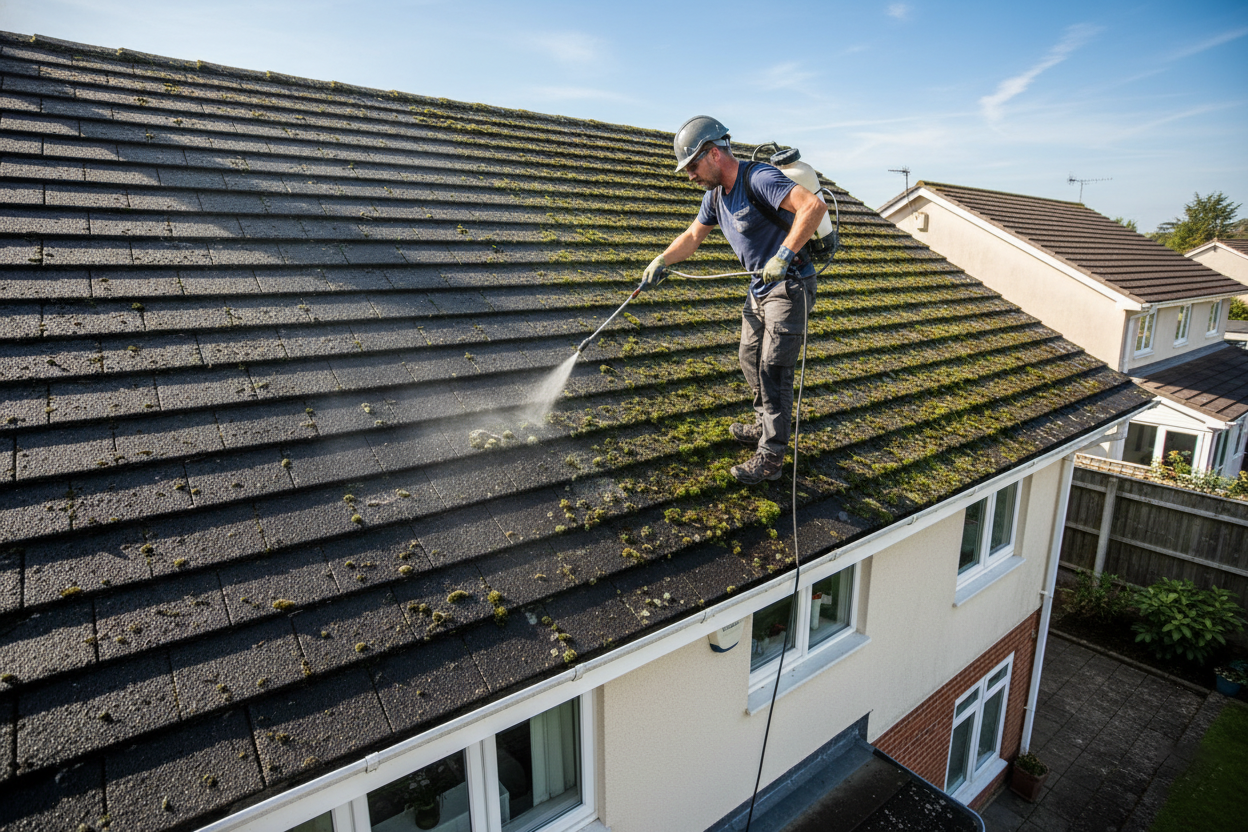 While soft washing utilises low-pressure water, it also involves the application of specific biocides. Its soft, gentle action kills moss and algae from the root level, meaning there are many years before they’ll start to grow back. Plus, the professionals up on the roof will identify some small problems, such as a cracked tile or loose flashing, before they become a major disaster!